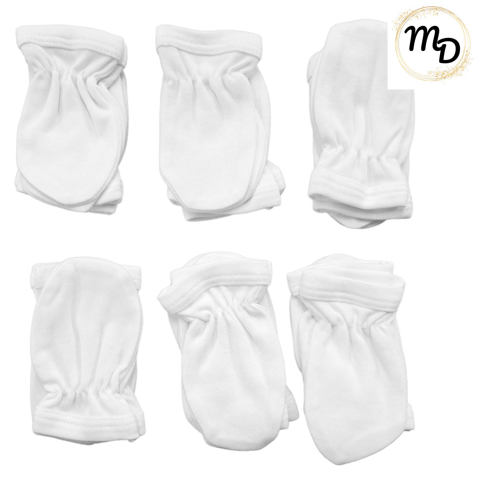 Βρεφικά γαντάκια που προσφέρουν προστασία από το γδάρσιμο του προσώπου με τα νυχάκια, με ελαφρύ λαστιχάκι στο επάνω μέρος, από 100% βαμβάκι. Κατάλληλα από 0+μηνών.