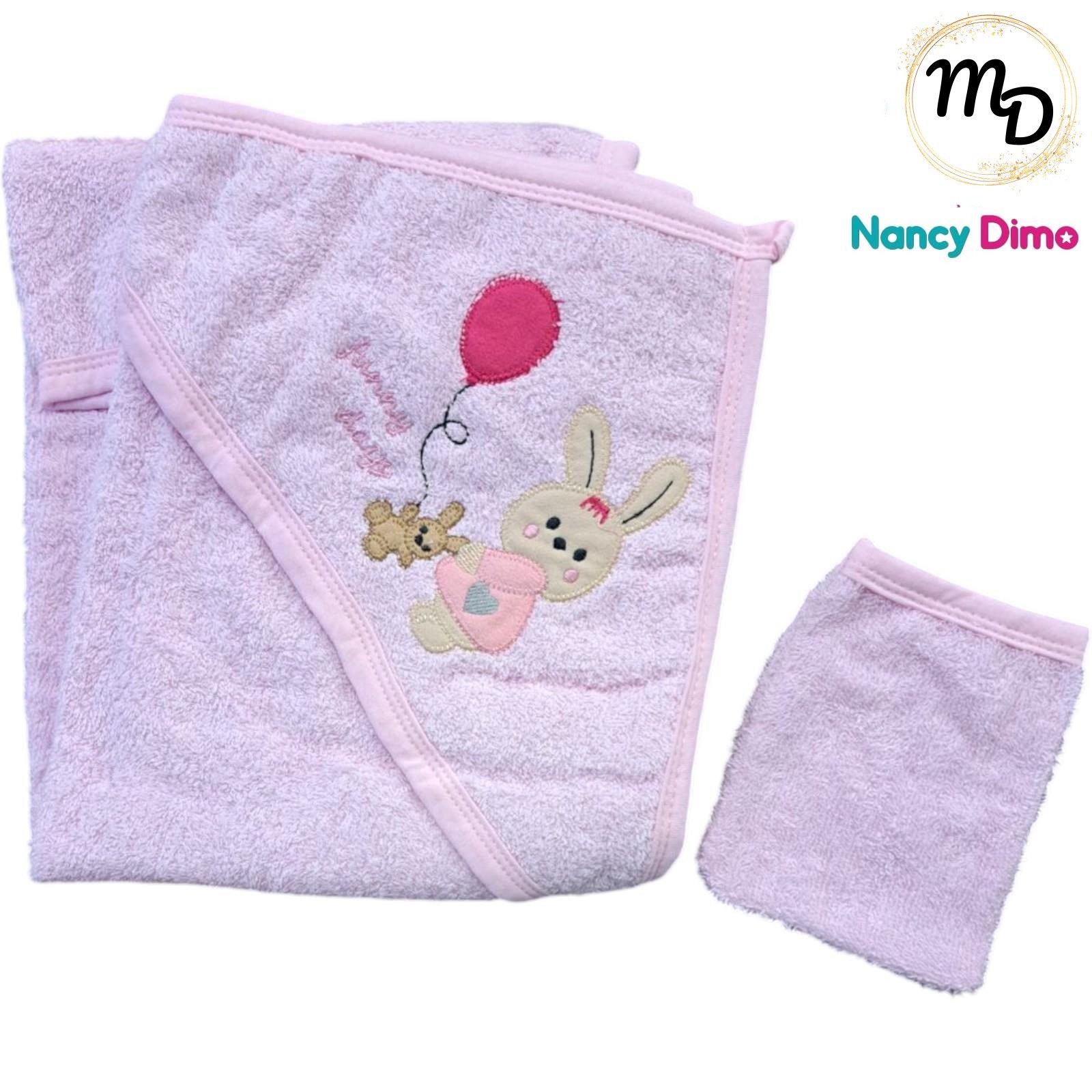 Βρεφική Κάπα Μπουρνούζι Μπάνιου με κουκούλα και γάντι μπάνιου ειδικά σχεδιασμένη για να καλύπτεται και το κεφαλάκι του μωρού αμέσως μετά το μπάνιου