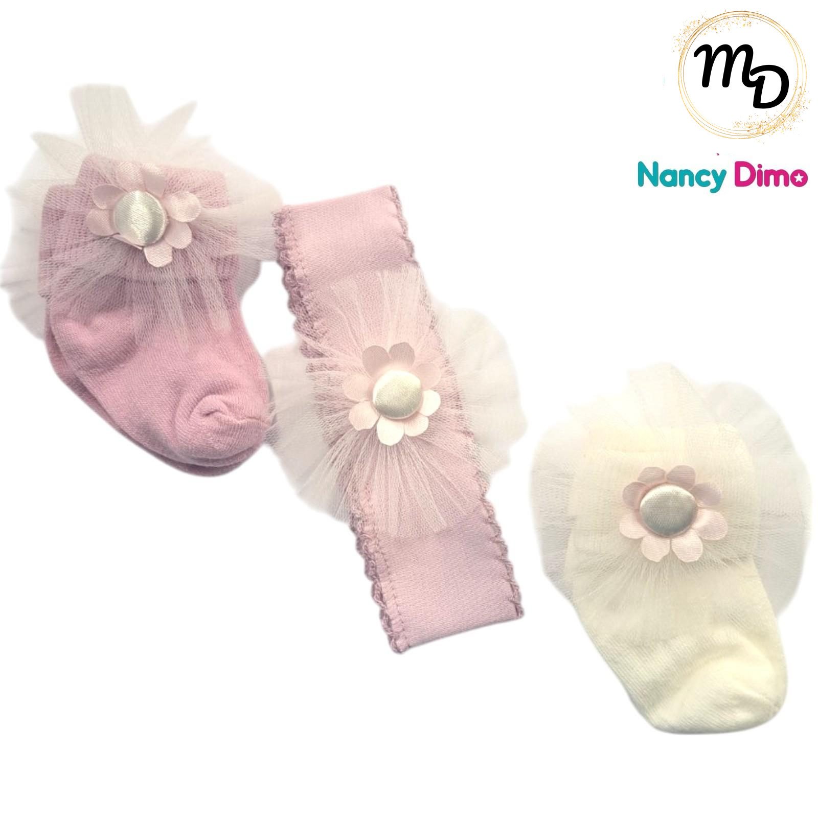 Καλτσάκια Βρεφικά Βαμβακερά Σετ Με Κορδέλα