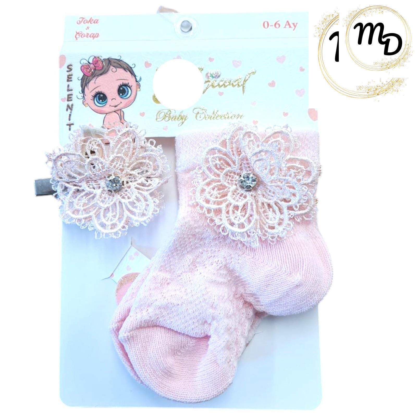 Βρεφικό σετ καλτσάκι και πιαστράκι με δαντέλα βαμβακερό