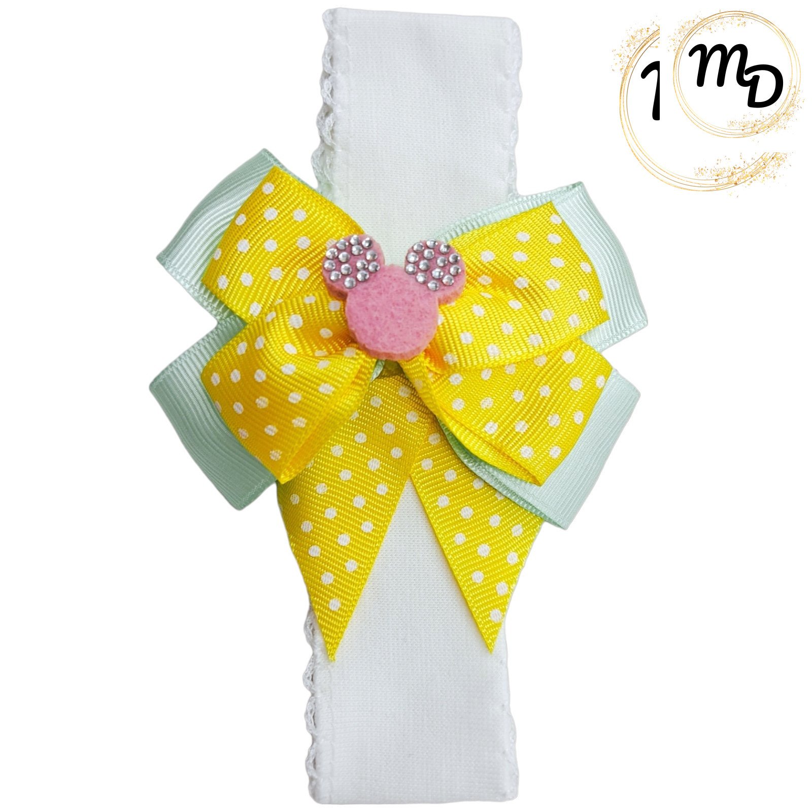 Κορδέλα μαλλιών με φιόγκο, από ελαστικό υλικό για να είναι άνετη στο κεφαλάκι του μωρού, χωρίς να το πιέζει.