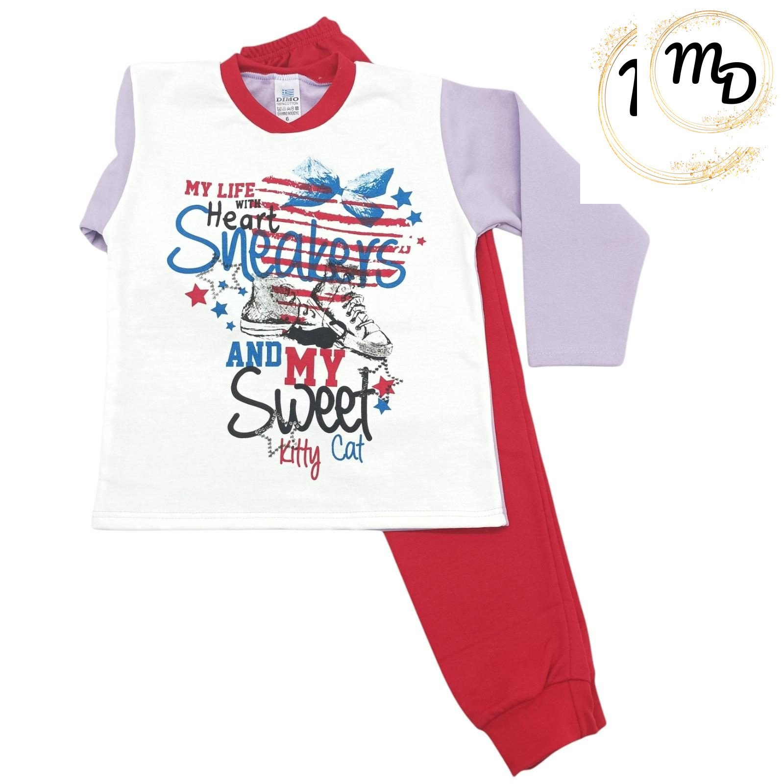 Σετ πυτζάμας από μαλακό βαμβάκι με εκτύπωση στο μπροστινό μέρος. Το παντελόνι διαθέτει λάστιχο στη μέση και στο κάτω μέρος για άνετη εφαρμογή .