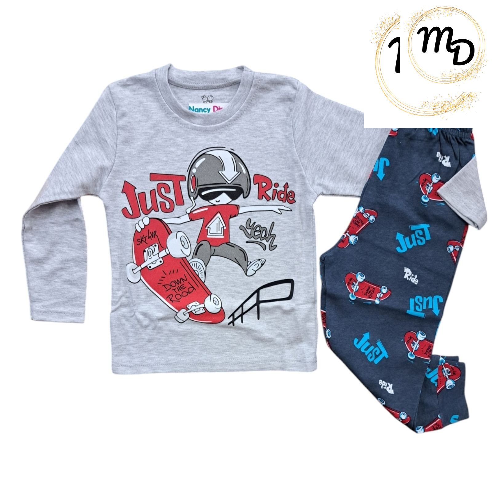 Σετ πυτζάμας από μαλακό βαμβάκι με εκτύπωση στο μπροστινό μέρος. Το παντελόνι διαθέτει λάστιχο στη μέση και στο κάτω μέρος για άνετη εφαρμογή .