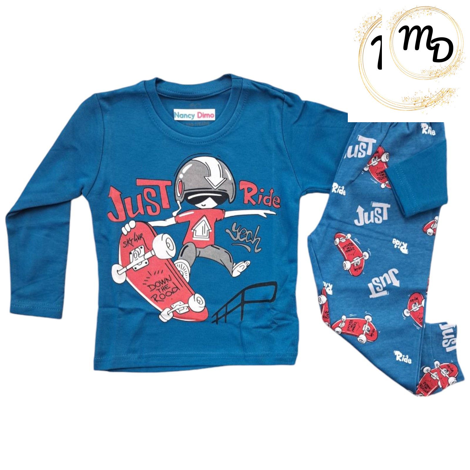 Σετ πυτζάμας από μαλακό βαμβάκι με εκτύπωση στο μπροστινό μέρος. Το παντελόνι διαθέτει λάστιχο στη μέση και στο κάτω μέρος για άνετη εφαρμογή .
