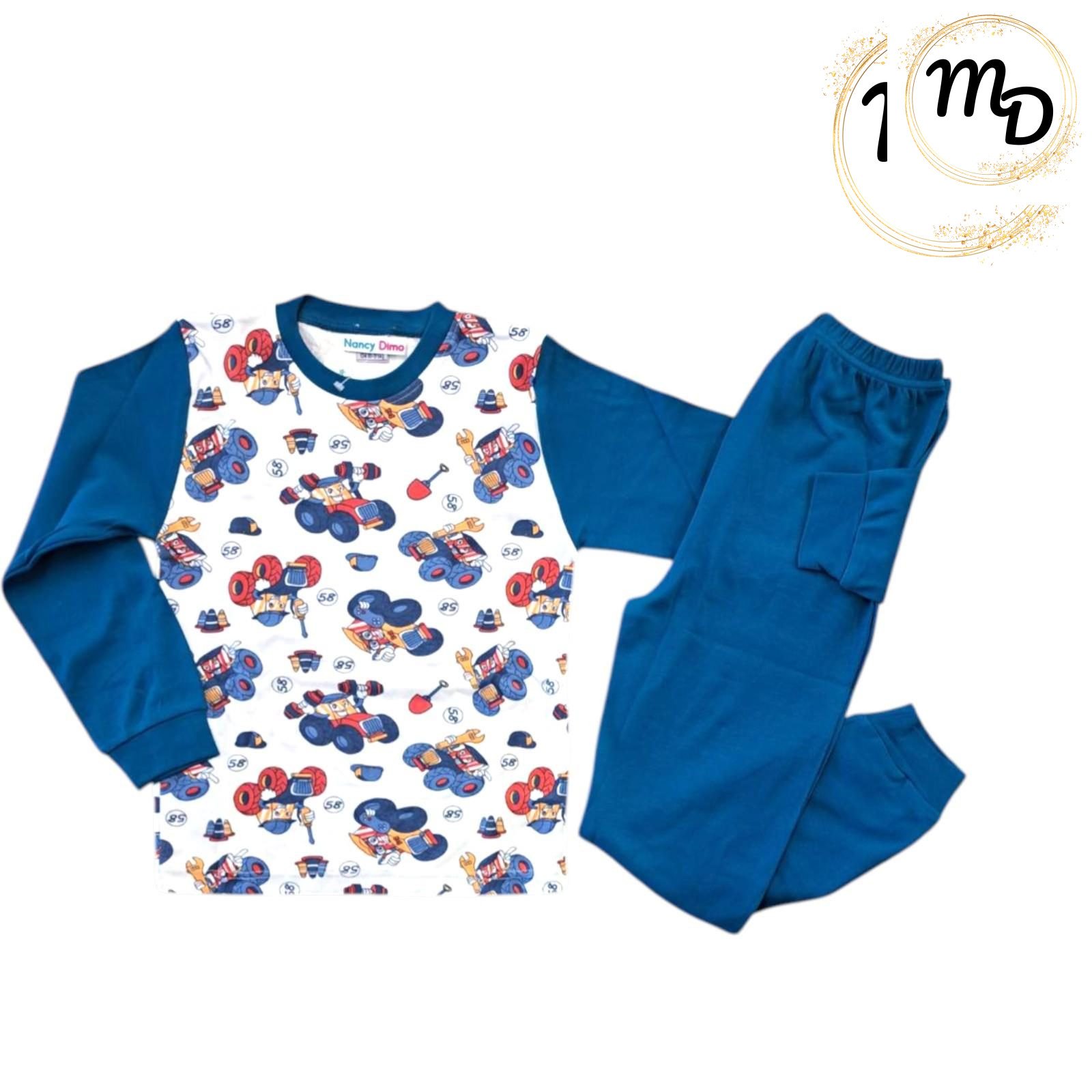 Σετ πυζάμας παιδικό από μαλακό βαμβάκι interlock με εμπριμέ μπλούζα και μονόχρωμο παντελόνι. Το παντελόνι διαθέτει λάστιχο στη μέση και κλειστό ποδαράκι στο κάτω μέρος για άνετη εφαρμογή .