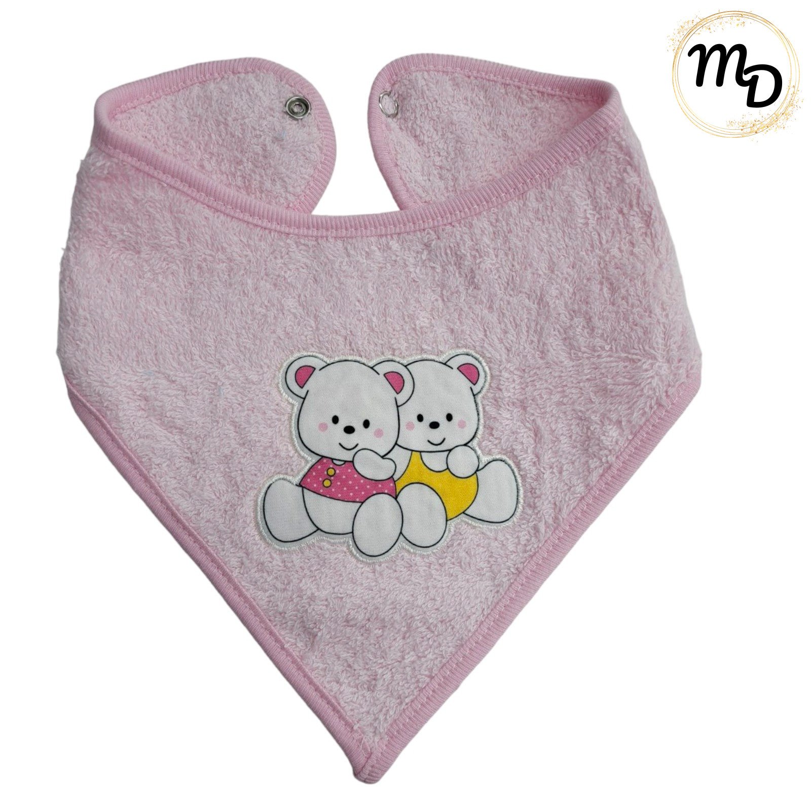 Τριγωνικές σαλιάρες κατασκευασμένες από 100% Βαμβάκι. Προστατεύουν τα ρούχα του παιδιού από το να λερωθούν ενώ τρώει και από τα σαλάκια. Ακόμα, μπορείτε να τις τοποθετήσετε εύκολα στο παιδί, καθώς κουμπώνουν με τρουξ.