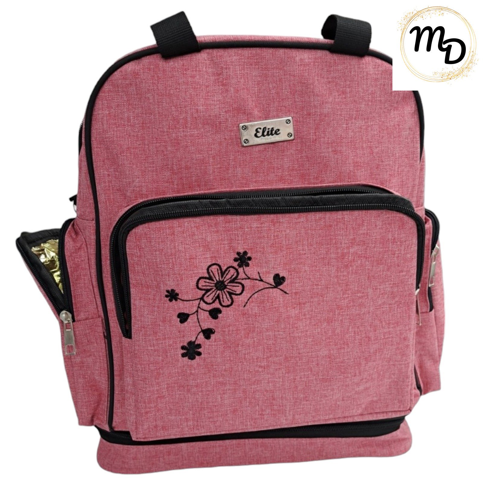 Διαθέτει ευρύχωρη αποθηκευτική τσέπη με φερμουάρ εμπρός με 3 ισοθερμικές θήκες για μπιμπερό